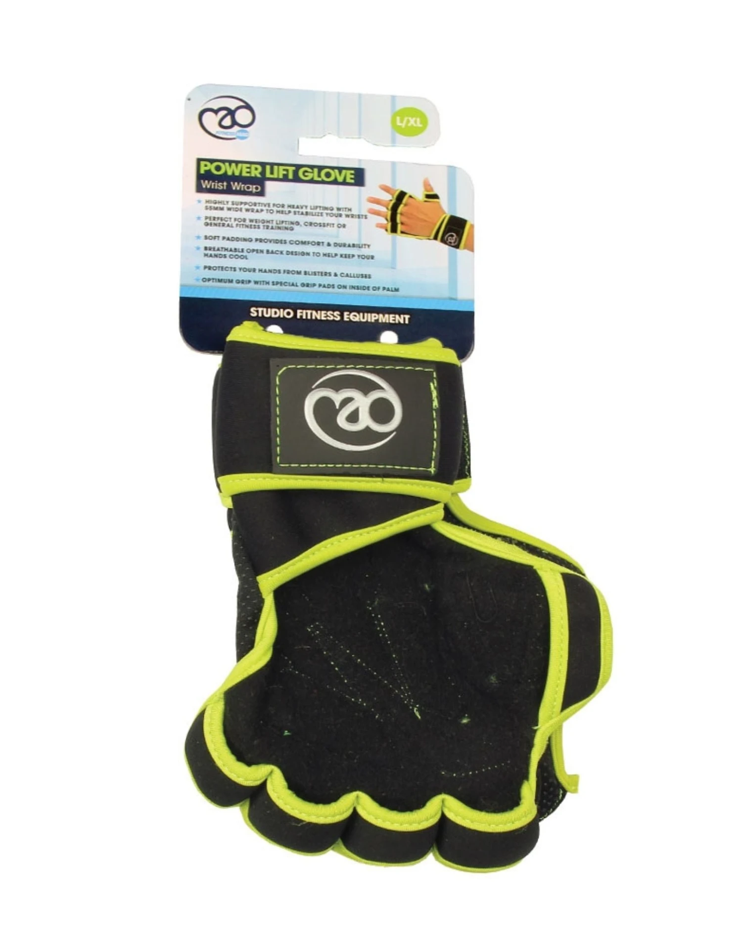 The Power Lift Gloves by Fitness Mad provide superior support with 55mm wide wraps, specially designed for added stability on the wrists during heavy lifting. The gloves have a breathable open back and soft padding for added comfort. These hardwearing gloves will not only keep your hands cool but also prevent blisters and calluses. Achieve optimum grip and performance with the Power Lift Gloves, a great option for weight lifters, CrossFit, and other fitness training pursuits.