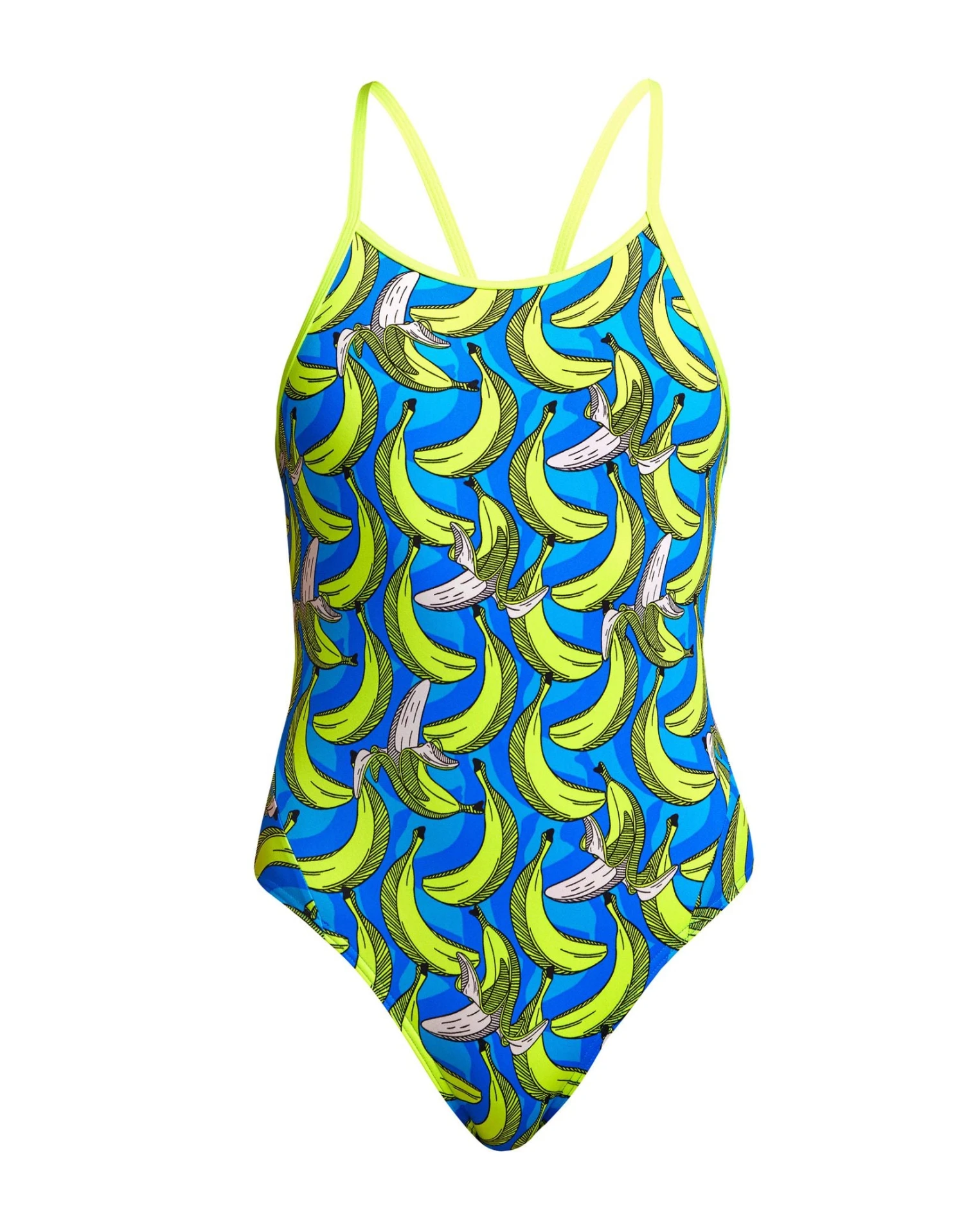 The Girls B1 Diamond Back Swimsuit from Funkita is designed with iconic banana prints. Featuring single-bind shoulder straps, modest rear coverage, and full front lining, it provides greater freedom of movement as well as a secure fit while swimming. Made from exclusive C-Infinity fabric, this swimsuit features high chlorine resistance and great durability and is perfect for frequent swimming and regular training.