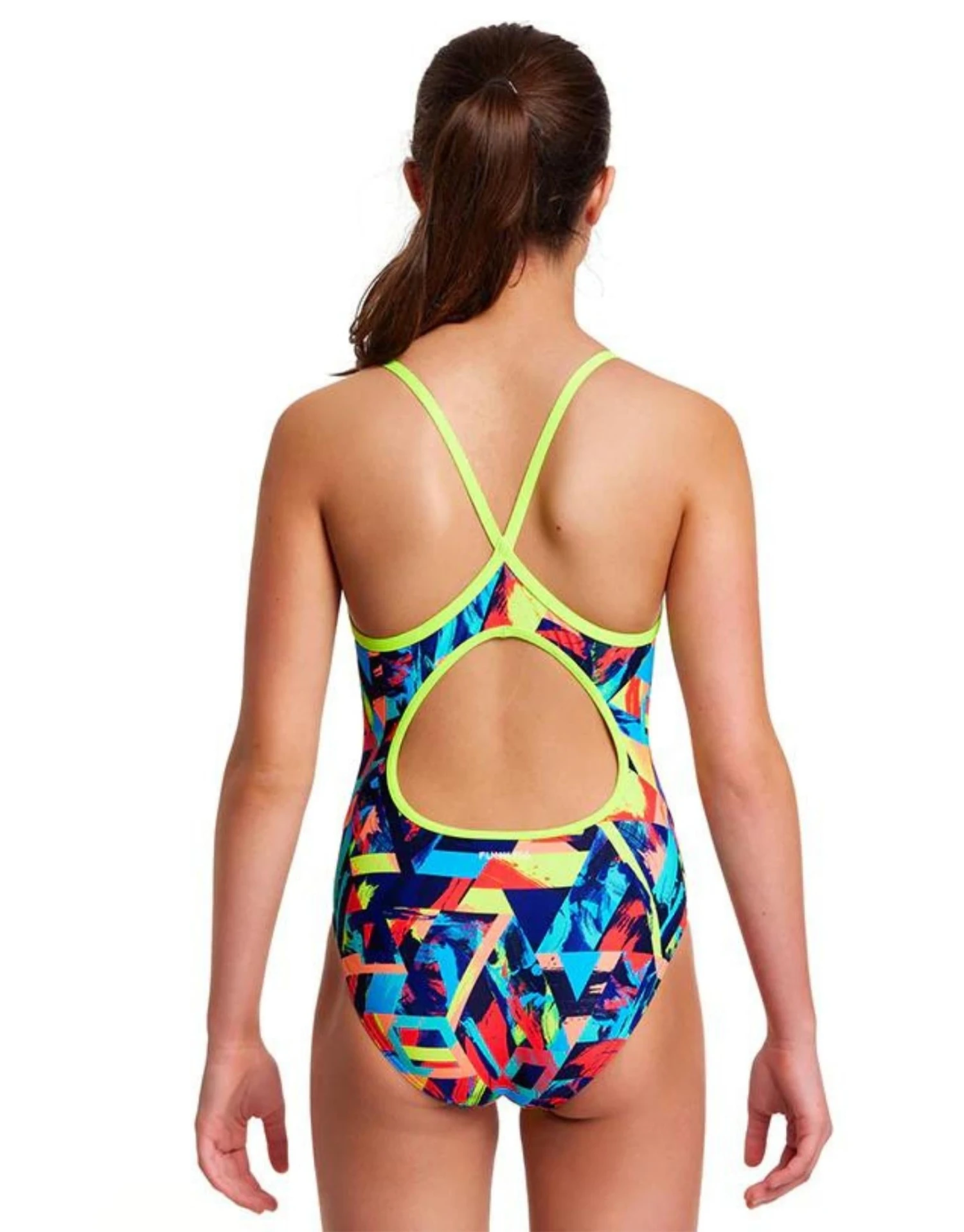 The Girls Blocked Bars Diamond Back Swimsuit from Funkita is designed for comfort and durability. With its front lining, double-bind shoulder strap and modest rear coverage, you will have a great supportive swimsuit. Paired with the C-infinity Fabric, your swimsuit will last longer and retain its vibrant colours.