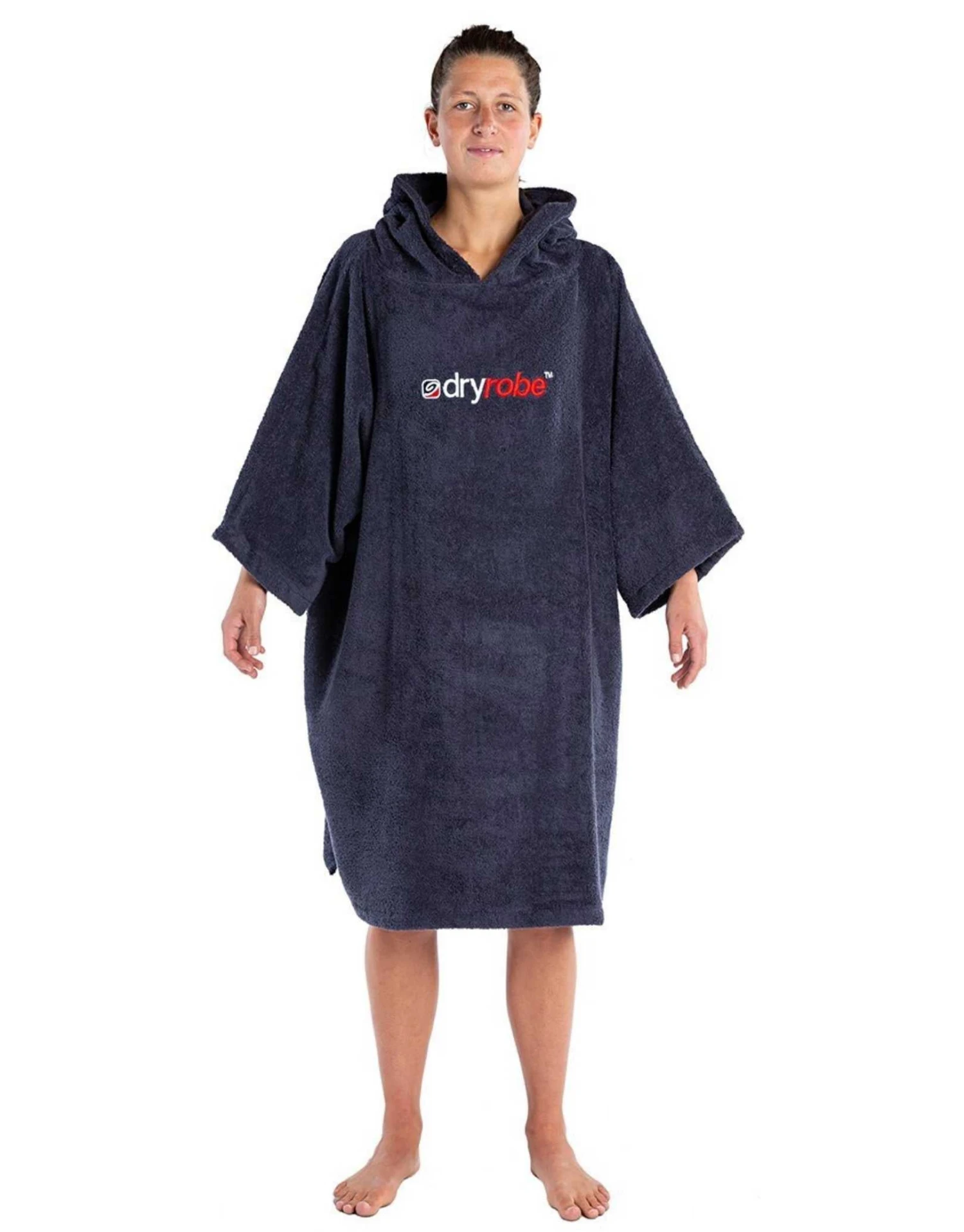Dryrobe’s Organic Cotton Towel Poncho in navy is a very efficient item to add to your kit as it acts as both a towel which is very absorbent and helps you get dry quickly, and also allows you to change in and out of your swimwear comfortably no matter where you are.