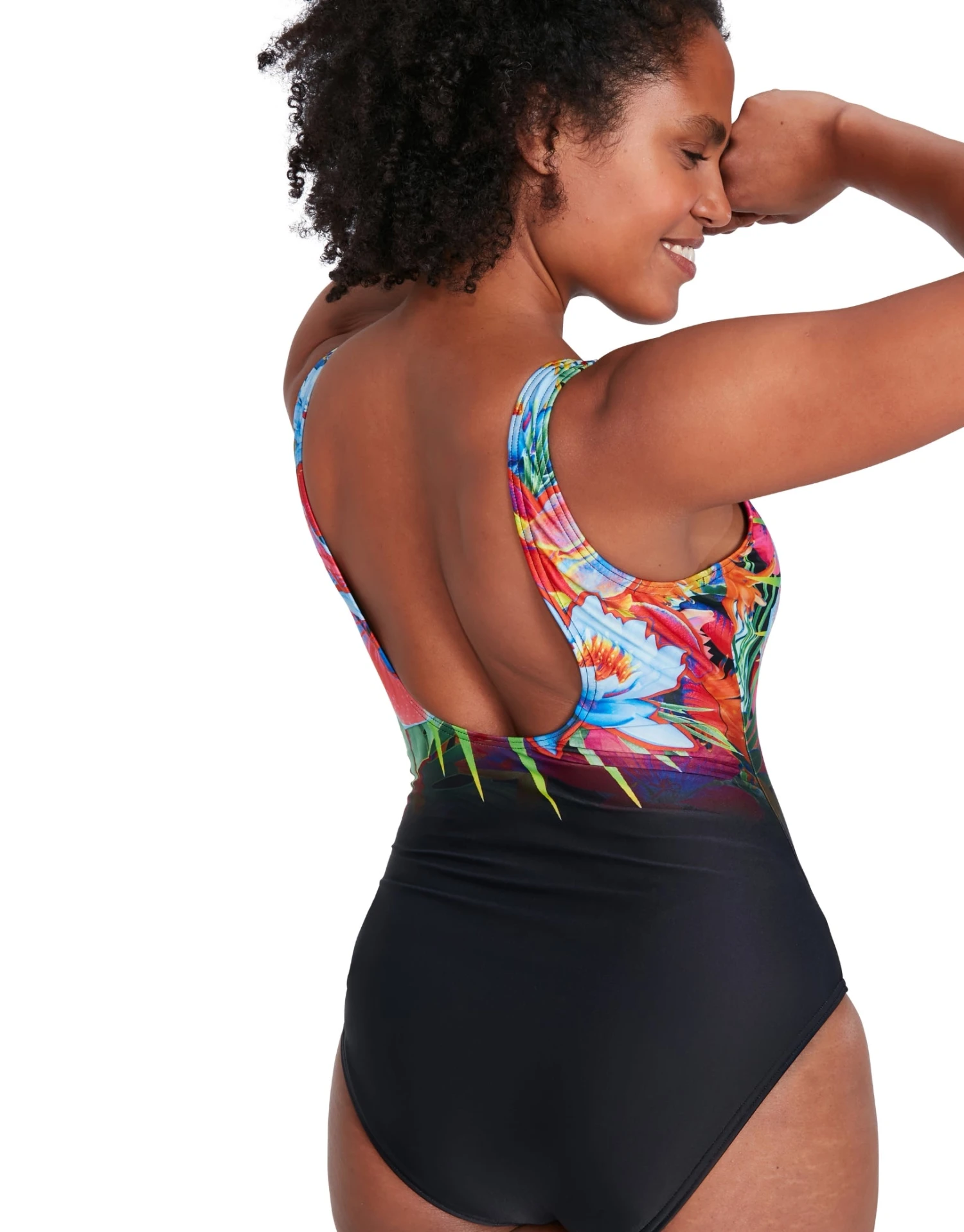 The Digital Placement U-Back Swimsuit from Speedo features a vivid montage of brightly-coloured tropical flowers. Made from ECO Endura Btite fabric, it provides higher chlorine resistance and offers superb colour performance to enjoy the vibrant colours for longer. The swimsuit is designed with a scoop neck and U-back and is perfect for beach escapes and lounging poolside.