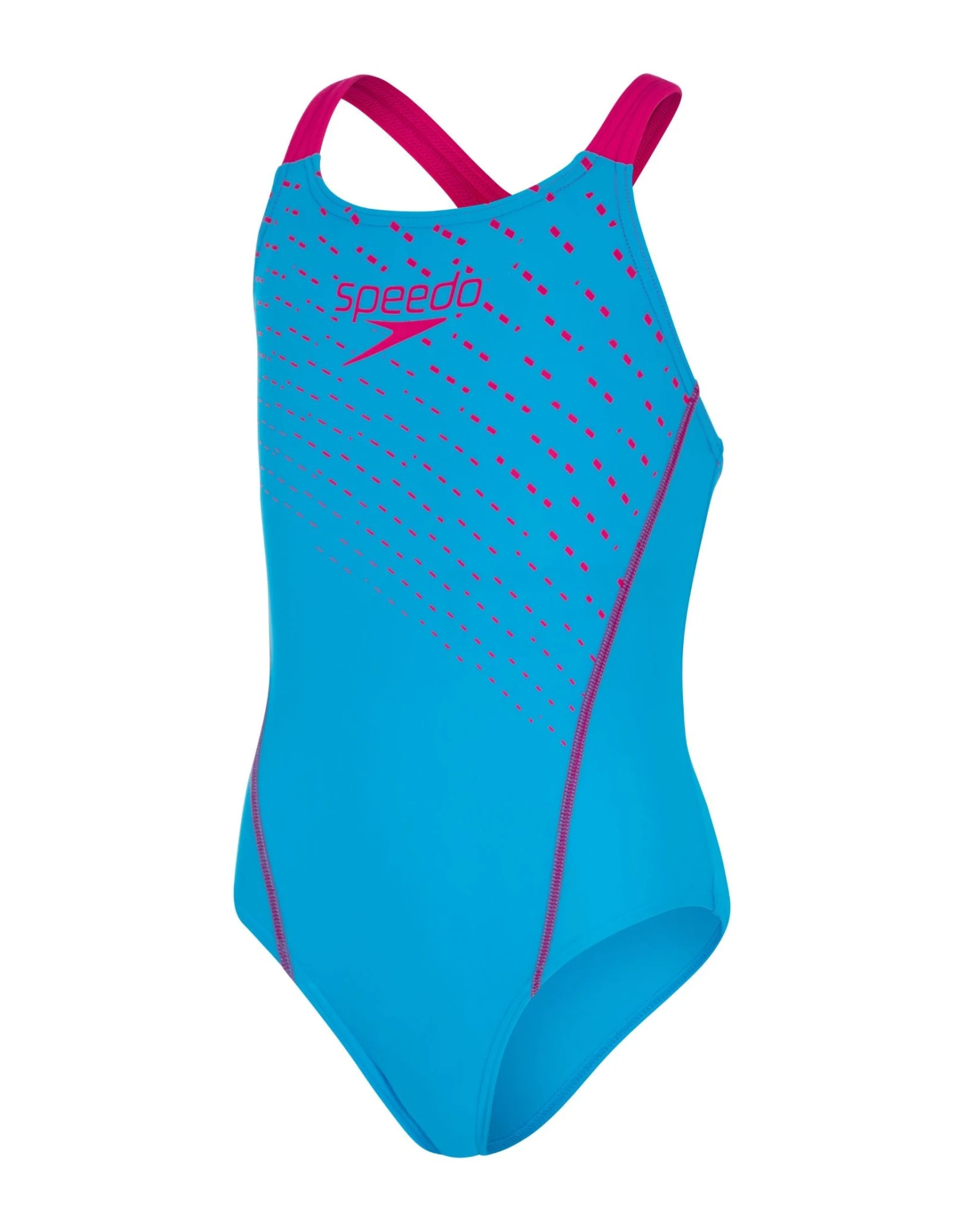 The Girls Medley Logo Medalist Swimsuit from Speedo is designed with an eye-catching kinetic wave print and colour-pop seams and straps. Made from the ECO EnduraFlex fabric, it provides higher chlorine resistance and lasts longer with CREORA HighClo. Featuring front and back lining, the medalist design offers greater freedom of movement and flexibility and is ideal for regular pool sessions.Â