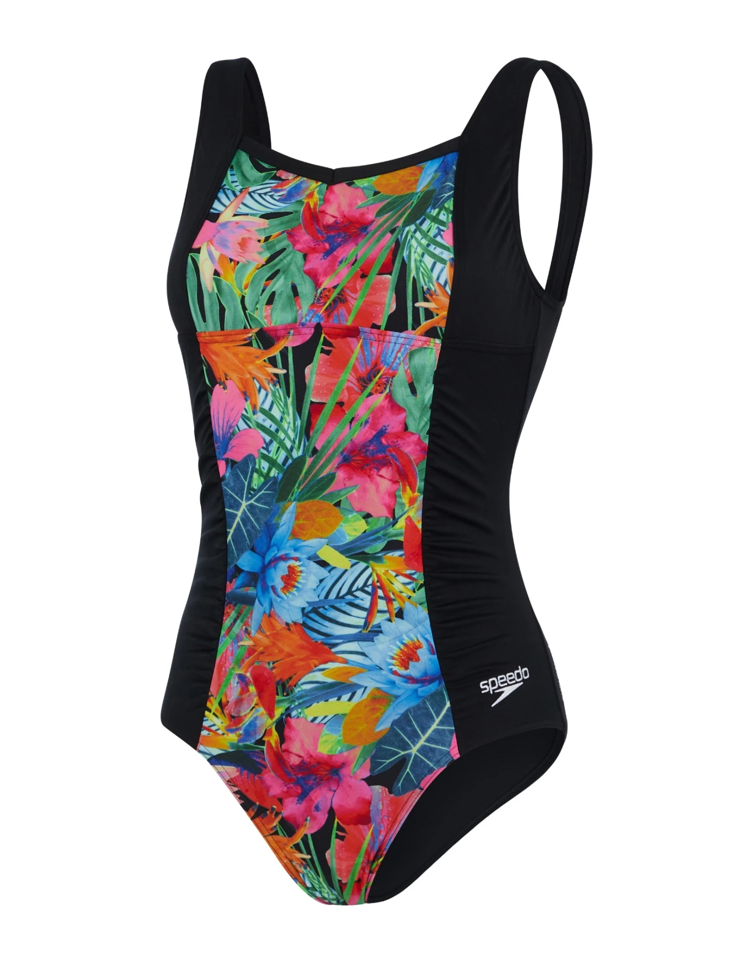 The Printed Contour Shaping Swimsuit from Speedo is designed with a montage of photo-real tropical floral prints. The scoop back design allows you easily get in and out of the swimsuit while the lined bust support and low leg height provide great coverage when swimming. Made from durable and quick-drying Eco Endurance+ fabric, this swimsuit offers 100% chlorine resistance and long-lasting performance.