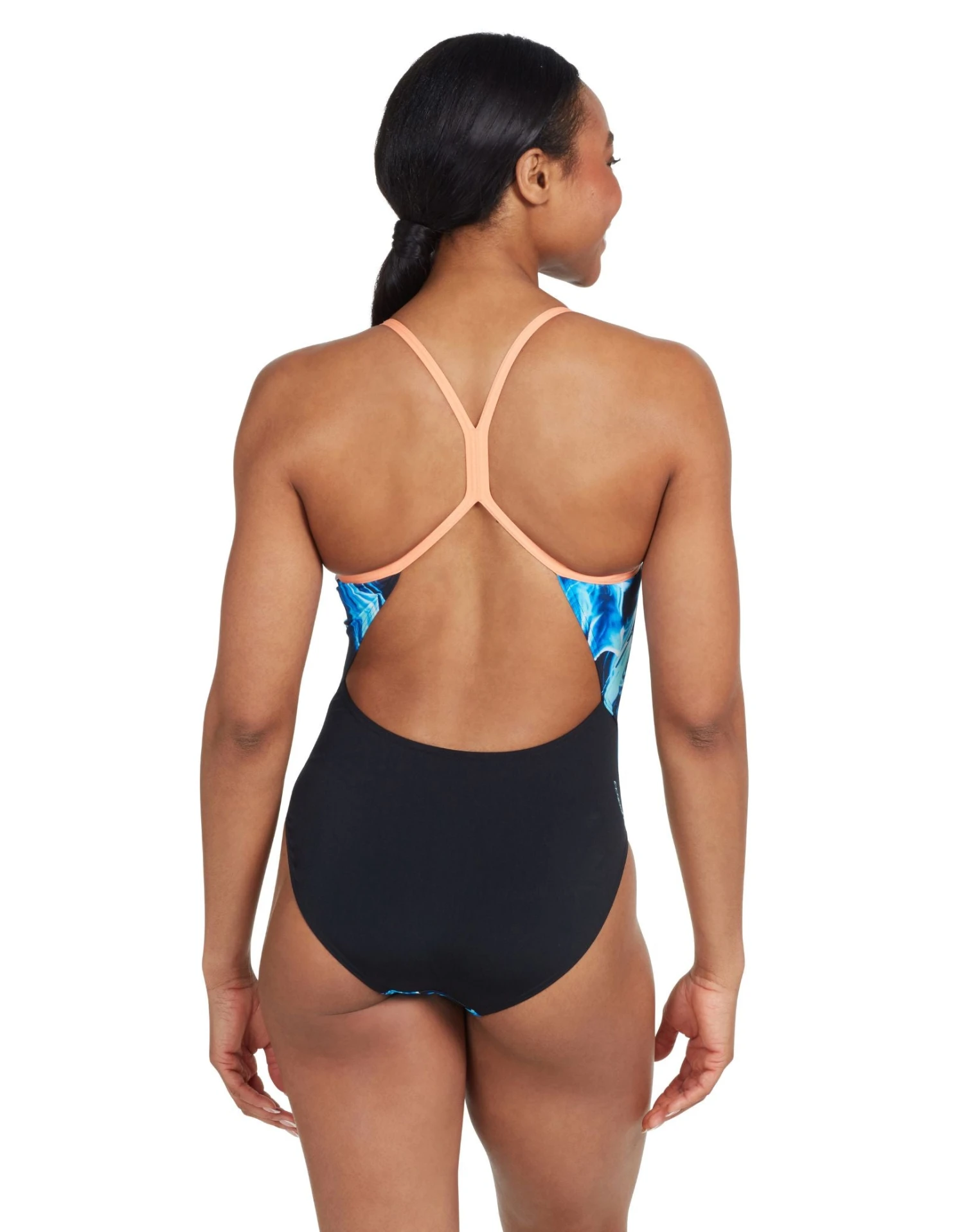 The Ocean Smoke Sprintback Swimsuit from Zoggs is designed with blue and white prints inspired by the ocean’s swirling shades. Thin straps, an open back, and a high leg cut provide greater freedom of movement when swimming. Made from eco-friendly Ecolast+ fabric, this swimsuit is quick-drying, durable and 100% chlorine resistant.